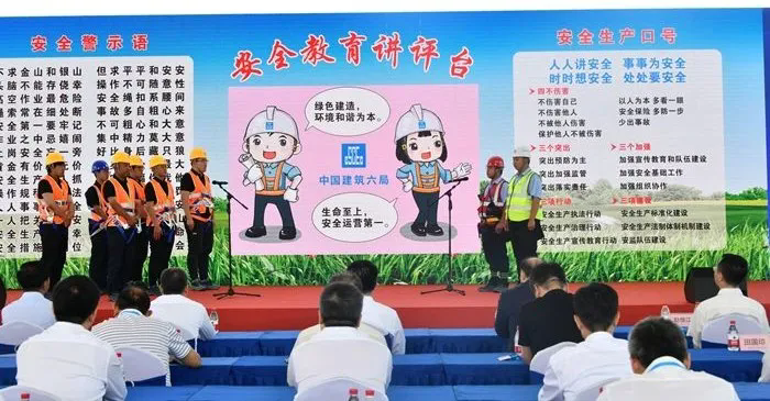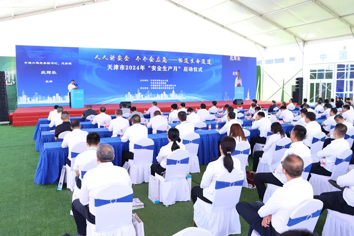 在天津市“安全生產(chǎn)月”活動啟動會議上,發(fā)布了由市安委會辦公室、市應(yīng)急管理局策劃制作的《人人講安全、個個會應(yīng)急——暢通生命通道》和《致敬安全守護(hù)者》主題宣傳片,部署了“安全生產(chǎn)月”重點(diǎn)工作任務(wù)。啟動儀式上,視頻連線了中建六局分會場活動,現(xiàn)場向中建六局應(yīng)急搶險隊伍進(jìn)行了授旗,全場人員集中開展了安全生產(chǎn)宣誓,企業(yè)員工結(jié)合工作實際演繹了“班前會”情景劇,并開展了火災(zāi)事故應(yīng)急救援演練。